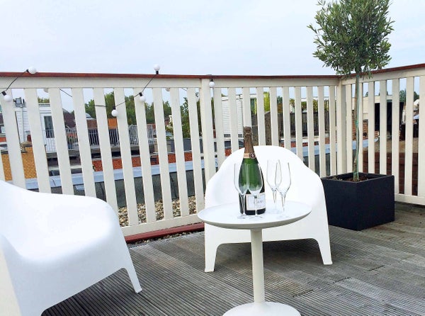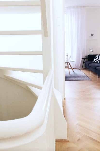 Indeling: bovenste verdieping, aparte toilet, woonkamer met een klein balkon. Compleet moderne keuken met inbouwapparatuur. Eén grotere en één kleinere slaapkamer. Grote badkamer met bad, wastafel en douche. Trap naar dakterras.
