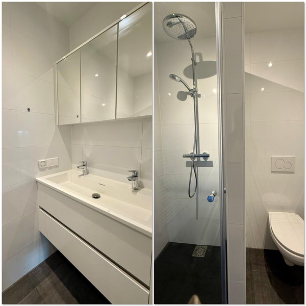 • Badkamer met inloopdouche, wastafel en toilet