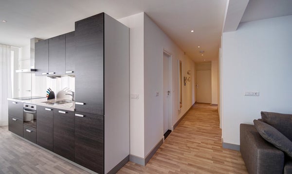 Entree via de lift naar de hal van het appartement met toegang tot alle kamers.