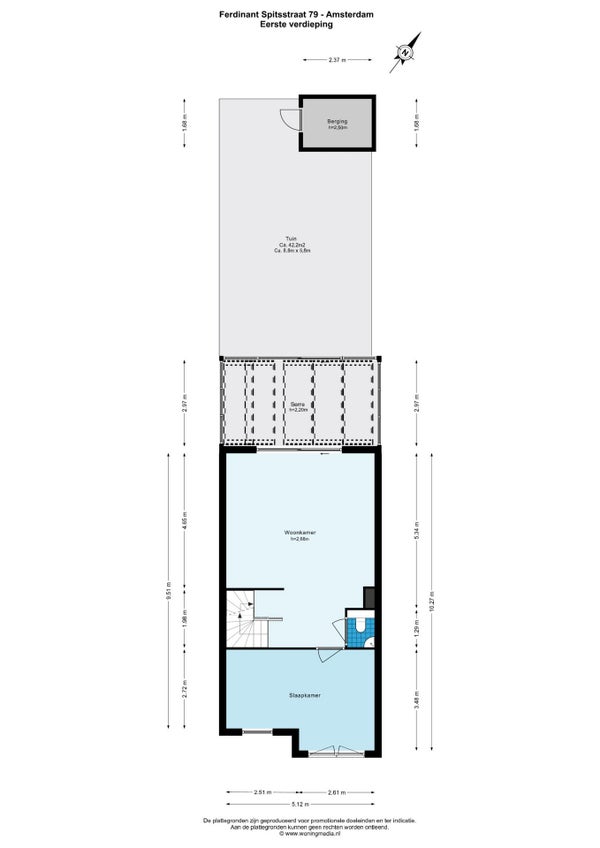 - Dakterras/tuin 60 m2 met externe berging van 3,5 m2