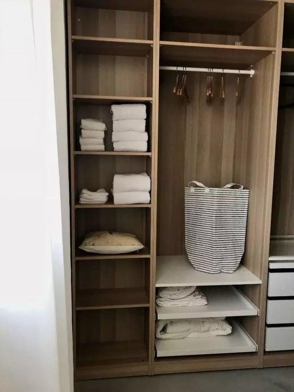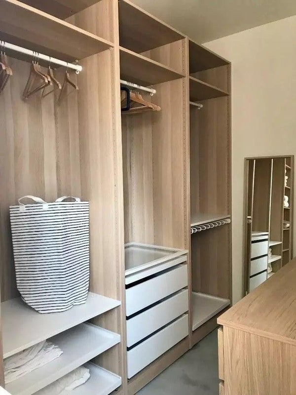 De grootste slaapkamer heeft zijn eigen inloopkast met veel opbergruimte.
