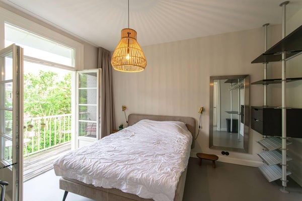 De master slaapkamer, genesteld achter de badkamer, biedt directe toegang tot de op het zuiden gerichte balkon.