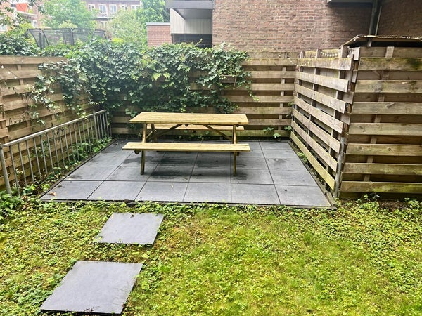 Grote ommuurde stadstuin van circa 60m2. De tuin is gedeeltelijk met gras en gedeeltelijk bestraat en is op het Zuidoosten georiënteerd.