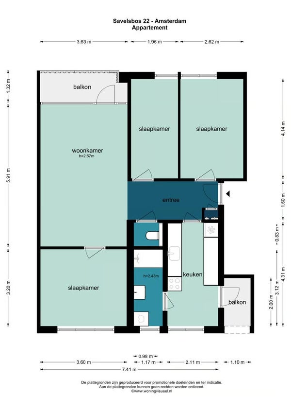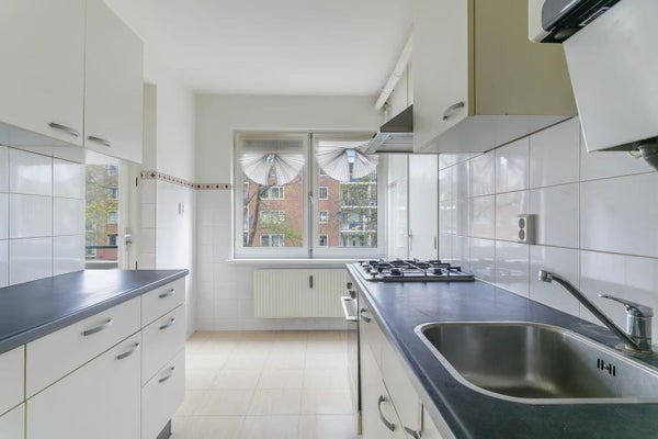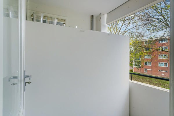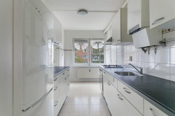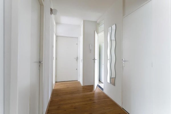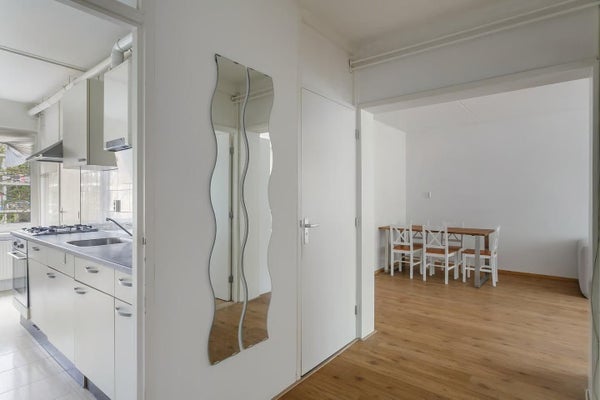 Je komt binnen in een ruime hal die toegang geeft tot bijna alle vertrekken. De lichte woonkamer nodigt uit tot ontspannen en biedt toegang tot het zonnige balkon op het zuidwesten. De separate keuken is voorzien van moderne inbouwapparatuur en grenst aan een tweede balkon (loggia) aan de voorzijde.