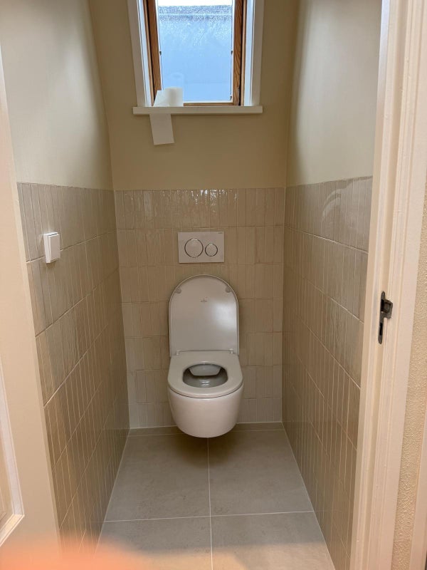 De entree komt uit in een lichte hal met separaat toilet en toegang tot de woonkamer.