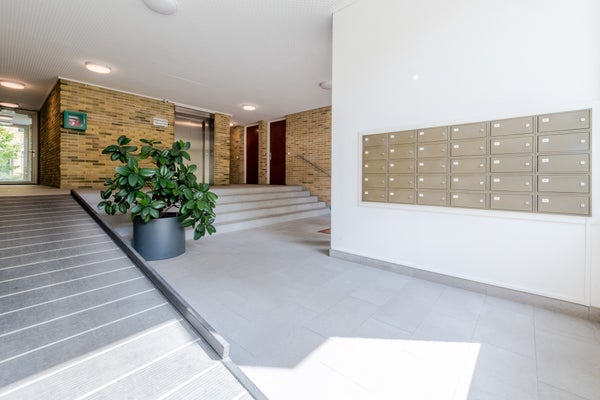 Gemeenschappelijke entree met toegang tot de bergingen en de eigen parkeerplaats in de parkeergarage. Trappenhuis naar verdiepingen én liftinstallatie. Galerij aan binnentuinzijde met eigen entree naar de woning.