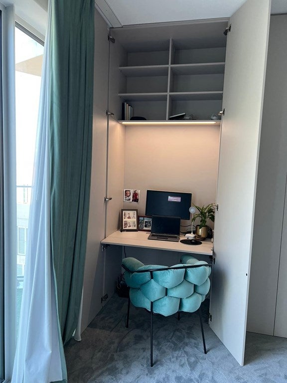 De locatie biedt een perfecte balans tussen stedelijk wonen en natuur. Bewoners hebben toegang tot uitzonderlijke voorzieningen, waaronder een schilderachtige 400 meter lange houten steiger die het complex omringt en een openbaar dakterras met panoramisch uitzicht over de stad en het IJmeer. Het gebouw zelf is een bruisend centrum van activiteit, met interne binnenplaatsen, fitnessfaciliteiten en een zeilschool. Door de nabijheid van de IJburg tramhalte is het appartement goed verbonden met het stadscentrum van Amsterdam, wat het een ideale keuze maakt voor degenen die een rustige, watergerichte omgeving zoeken zonder concessies te doen aan stedelijke toegankelijkheid.