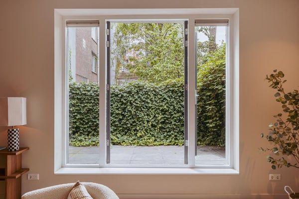 De tuin is een van de grote pluspunten van deze benedenwoning. De oppervlakte van circa 12 vierkante meter, gecombineerd met de ligging op het noordwesten, maakt dit een ideale plek voor ontspanning. Het geheel voelt intiem aan dankzij de rustige ligging aan de groene privé steeg.