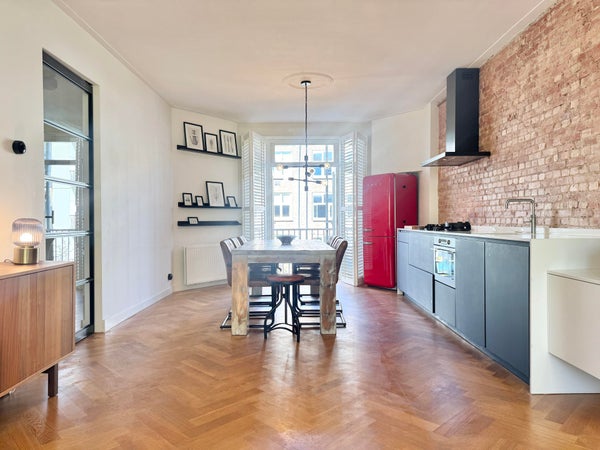 Ontdek dit prachtige appartement van 80 m², gelegen op de grens van de Rivierenbuurt en het bruisende De Pijp. Dit hoogwaardige 4-kamerappartement bevindt zich op de tweede verdieping van een charmant gebouw uit de jaren '1900. Het appartement beschikt over een ruime en lichte woonkamer met een warme, authentieke sfeer en een nieuwe luxe open keuken, uitgerust met een gasfornuis, een hoogwaardige oven en een ingebouwde vaatwasser. Er zijn twee comfortabele slaapkamers, één met een tweepersoonsbed en een grote kast, de andere met een eenpersoonsbed dat kan worden omgebouwd tot een tweepersoonsbed. De derde kamer wordt momenteel gebruikt als kantoor, maar kan gemakkelijk dienen als gastenkamer of inloopkast. Een moderne badkamer met inloopdouche en een apart toilet completeert de indeling. Er is een charmant balkon dat verbonden is met de woonkamer. Deurloostraat is zo'n rustig elegante straat in de Amsterdamse Rivierenbuurt (dichtbij De Pijp) die perfect balans biedt tussen het stadsleven en een rustige, residentiële sfeer. Omzoomd door klassieke architectuur uit de jaren '30 en met groene bomen, biedt het een gevoel van ruimte en licht dat zeldzaam is voor Amsterdam. Om de hoek vind je levendige cafés en ambachtelijke bakkerijen op de Maasstraat en Scheldestraat, terwijl de Amstel en het Beatrixpark op loopafstand liggen voor wandelingen. De locatie is uitstekend — centraal gelegen tussen De Pijp, Rivierenbuurt en Oud-Zuid. De snelweg ligt vlakbij, waardoor het gemakkelijk is om de stad te verlaten, en de Zuidas zakendistrict ligt op slechts een paar minuten afstand. Openbaar vervoer en belangrijke wegen liggen in de buurt, maar de straat zelf voelt vredig aan. Thuis delen is toegestaan tot twee personen. Huisdieren zijn toegestaan in overleg. De bruto jaarsalariseis voor dit appartement is €120.000.