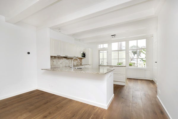 Indeling: Entree op de begane grond. Trap naar de eerste etage en toegang tot de heerlijke, lichte woonkamer voorzien van houten vloeren, houten balkenplafond en ramen aan zowel voor als achterzijde. De voorzijde biedt een prachtig uitzicht op de Prinsengracht en de Westerkerk. De moderne open keuken aan de achterzijde is voorzien van alle wenselijke inbouwapparatuur zoals een inductiekookplaat met afzuiging, oven, magnetron, vaatwasser, koelkast en vriezer. Apart toilet met fonteintje. Vanuit de keuken is er toegang tot het dakterras aan de achterzijde van het pand.