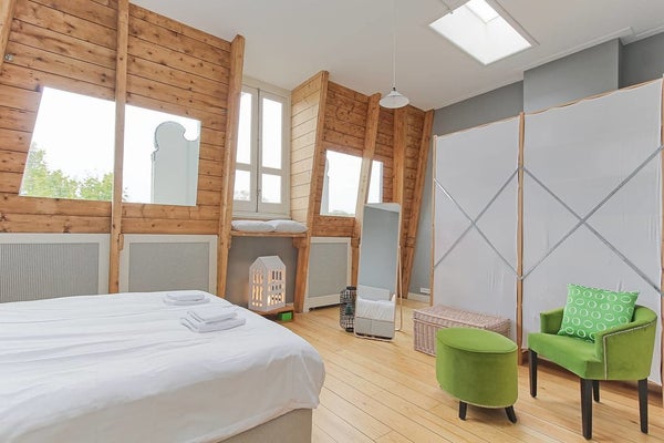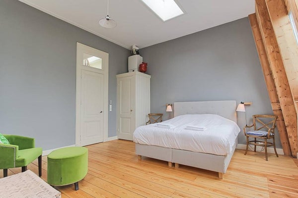 De slaapkamers zijn voorzien van houten vloerdelen. Twee kamers beschikken over een tweepersoonsbed; één kamer heeft een eenpersoonsbed.