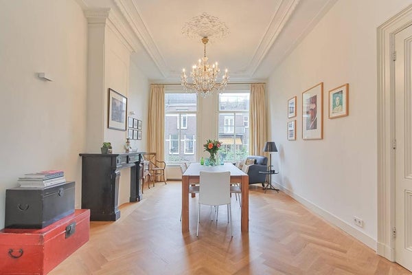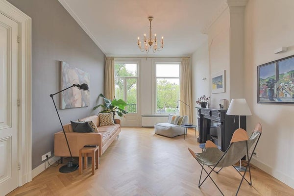 Het betreft een elegant appartement van 167 m², voorzien van vier slaapkamers, hoge plafonds, fraaie originele details en een zonnige buitenruimte met uitzicht over de stad.