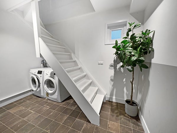 Via een eigen opgang betreed je de woning en kom je binnen in een royale hal, voorzien van voldoende bergruimte en een aparte wasruimte.