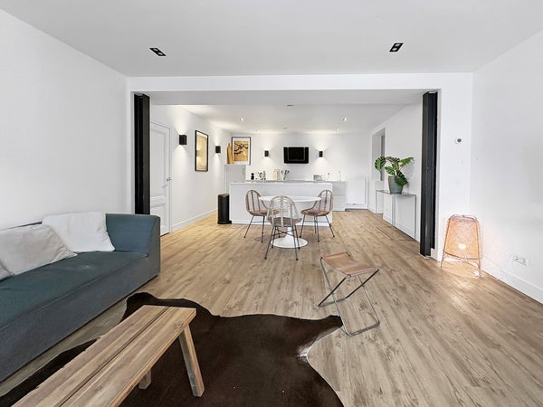 De ruime woonkamer met grote ramen zorgt voor veel lichtinval en een prettige sfeer. De woning is smaakvol ingericht en direct instapklaar.