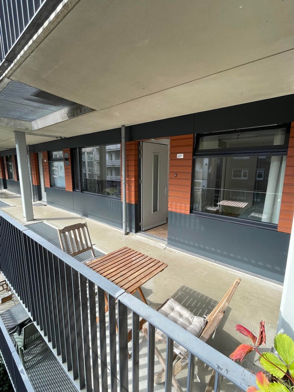 Voordat je de woning binnenkomt, tref je een galerijterras van ca. 6m2 dat bij de woning hoort. Dit is een fijne plek om te ontbijten in de zon en uit te kijken op de riante binnentuin.