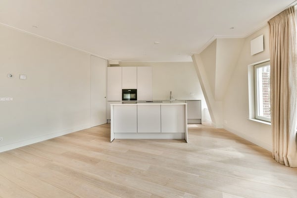Je komt binnen in de ruime hal waar je een garderobe en gastentoilet vindt. Een ontwerp glazen en stalen deur leidt je naar de woonkamer van 65 m²!! die veel natuurlijk licht ontvangt door de meerdere ramen door de hoeklocatie. De keuken is uitgerust met inbouwapparatuur, het heeft zelfs een Quooker, een kookeiland en een berging. Aan de achterkant van het appartement is een slaapkamer van 16 m² met op maat gemaakte kasten en een ensuite badkamer met douche en dubbele wastafel.