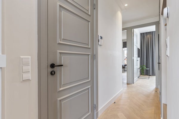 Het gehele pand is een aantal jaar geleden volledig gerenoveerd waarbij alles op een zeer smaakvolle en luxe manier is verzorgd; een lift naar alle verdiepingen; een parket eiken houten vloeren, handgemaakte plafondhoge deuren, een design keuken geleverd met alle denkbare apparatuur, ingebouwde kast en opslagruimtes, 2 ruime slaapkamers en openslaande deuren naar het balkon verbonden aan de grootste slaapkamer. Het balkon is gelegen op het westen dus de hele middag en avond zon! Alle ramen zijn voorzien van houten kozijnen met extra dik dubbel glas.