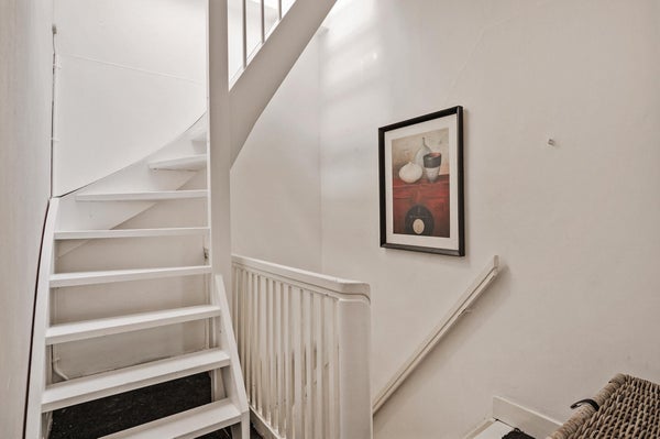 Entree woning met hal naar de ruime woon/eetkamer. Dichte keuken voorzien van inbouwapparatuur en toegang tot het balkon. Ruime slaapkamer aan de rustige achterzijde van het huis met openslaande deuren naar het balkon. Een extra kamertje perfect als baby-, werk- of logeerkamer. Badkamer met douche en wastafel. Separate toilet. Middels vaste trap toegang tothet ruime dakterras.