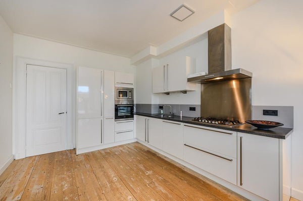 Er is een ruime leef-keuken met een uitgebreid assortiment aan inbouwapparatuur zoals een koel-vries combinatie, vaatwasser, 5-pits gasfornuis en afzuigkap.