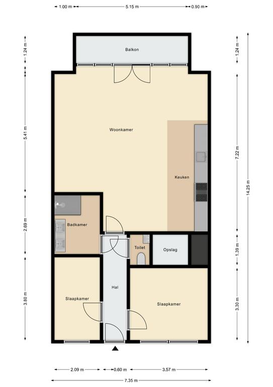 De ruime woonkamer is overspoeld met natuurlijk licht en heeft een open keuken die volledig is uitgerust met hoogwaardige apparaten. Vanuit de woonkamer heeft u toegang tot het balkon, dat de volle breedte van de woonruimte beslaat en een uitstekende buitenruimte biedt voor ontspanning en vermaak.