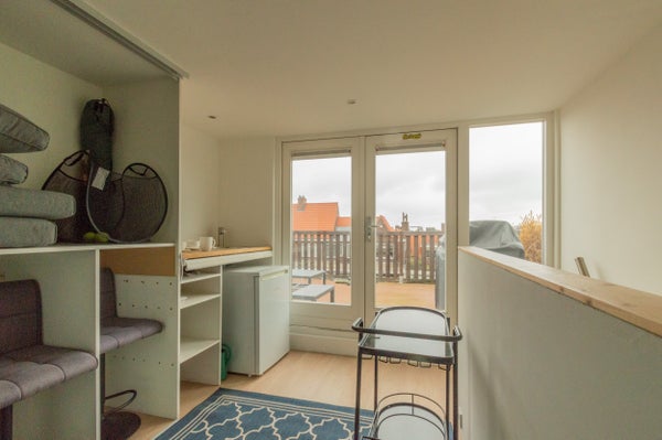 Aan de achterzijde vind je de moderne keuken (2022) – een echte eyecatcher met hoogwaardige inbouwapparatuur zoals een Quooker, vaatwasser, oven en een inductiekookplaat met randafzuiging. Vanuit de keuken loop je zo het tweede balkon op, met uitzicht over de rustige, groene binnentuin. Aangrenzend ligt een fijne slaapkamer, eveneens met toegang tot het balkon. Op deze verdieping bevindt zich ook de eerste, stijlvolle badkamer (2022) met inloopdouche, toilet en wastafel.