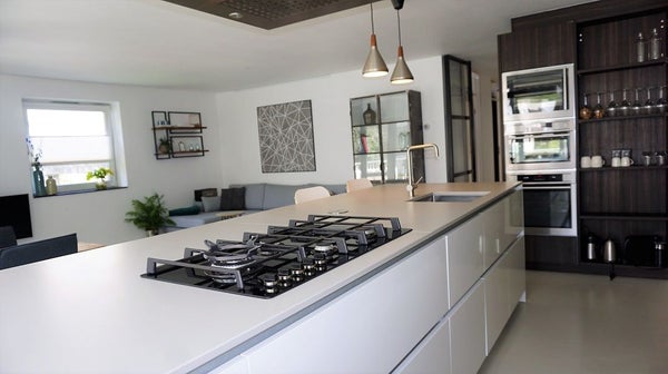 Bij binnenkomst komt u in de open hal waar links de ruime woonkamer met een riante open keuken met kookeiland, De keuken is voorzien van een 5 pits kookplaat, koel-vries combi, vaatwasser, oven, stoomoven en een wijnklimaat kast voor de liefhebber.