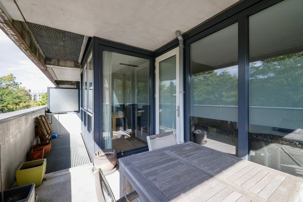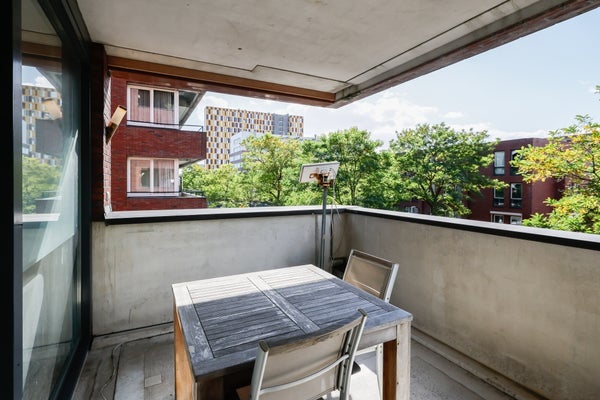 De woonkamer vormt het hart van de woning: een lichte, open ruimte waar grote raampartijen zorgen voor een zee aan daglicht. De schuifpui biedt toegang tot het royale balkon, waar u heerlijk kunt genieten van een kop koffie in de ochtendzon of een diner op warme zomeravonden. Dankzij de beschutte ligging is het balkon een verlengstuk van de woonkamer en een plek waar u in alle rust tot uzelf kunt komen.