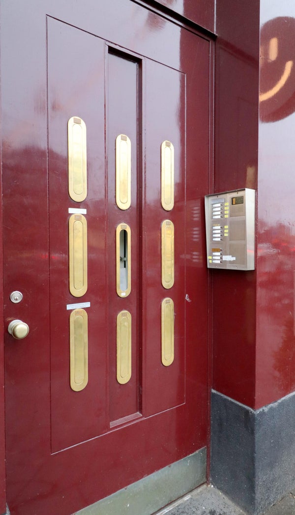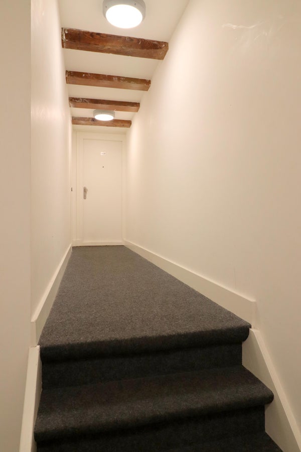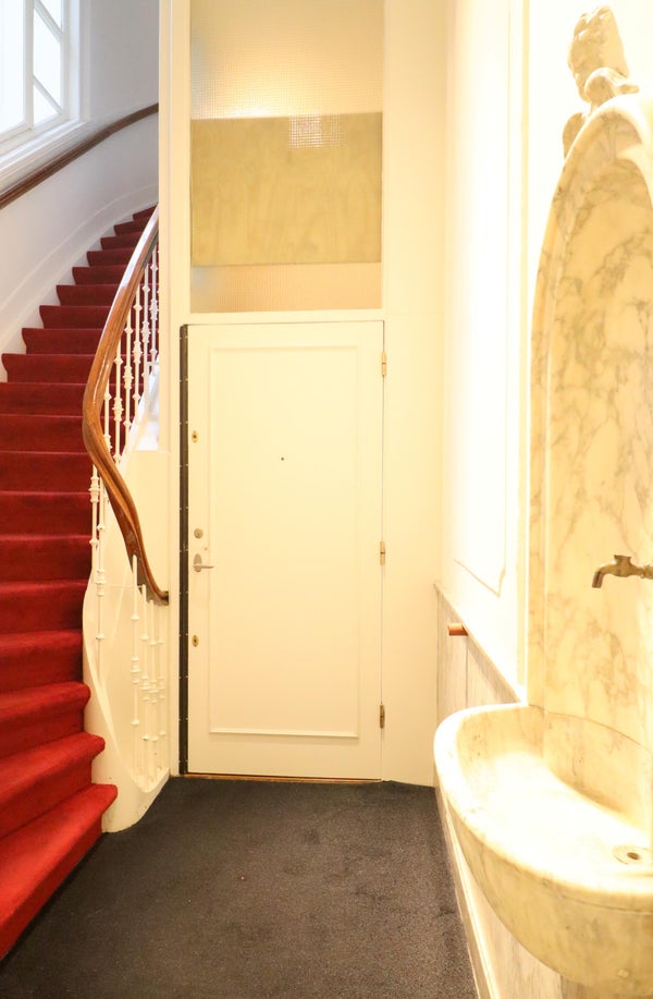 Voordeur met trapopgang naar de vierde verdieping.