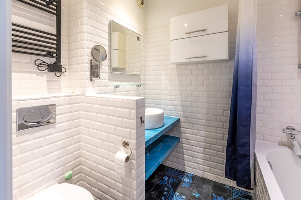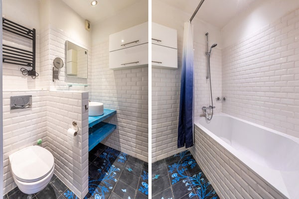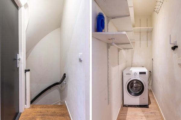 De slaapkamer bevindt zich aan de rustige voorzijde en biedt voldoende ruimte voor een tweepersoonsbed, aangrenzend een tweede slaapkamer. De badkamer beschikt over een ligbad, wastafel en toilet. Tot slot is er een aparte berging voor de wasmachine en droger, en ook de CV-ketel is netjes weggewerkt in een geïsoleerde kast.