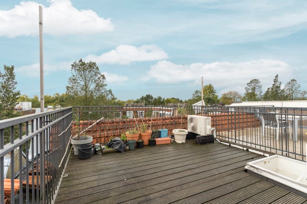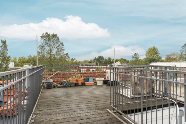 Vanuit de hal is het riante dakterras bereikbaar via een dakluik, een perfecte plek om te ontspannen en van de zon te genieten.