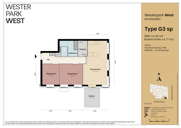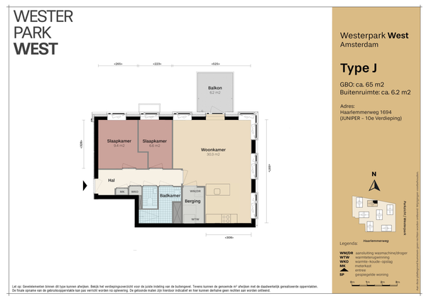 • Woonoppervlakte van 65 vierkante meter met twee slaapkamers