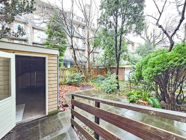 De tuin heeft een berging.
