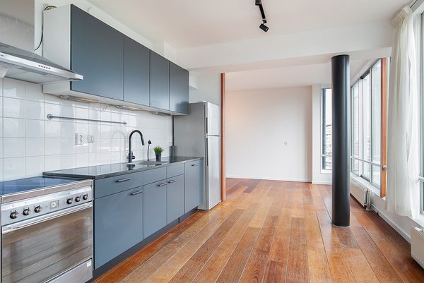 De ruime L-vormige woonkamer en keuken bevinden zich aan de achterkant van het appartement. Het aantal grote ramen creëert een openheid en helderheid in de accommodatie. De keuken is uitgerust met een grote oven, gasfornuis, vaatwasser, koelkast en vriezer. Er is een adembenemend uitzicht over het kanaal en de omgeving vanaf deze kant van het appartement.