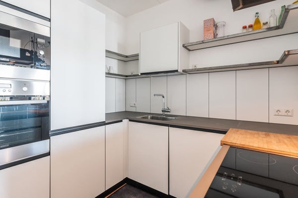 De ruime woonkamer is voorzien van een open keuken met koel-vriescombinatie, elektrische kookplaat, afzuigkap en vaatwasser. Zoals gezegd kunt u vanuit de woonkamer maar ook vanuit de slaapkamers genieten van het fantastische uitzicht. Alles gemeubileerd zoals u op de foto's ziet minus de tv kast en tv + wasmachine. Dit appartement is ook inclusief een ondergrondse parkeerplaats, die je kunt verhuren als je deze zelf niet wilt gebruiken.