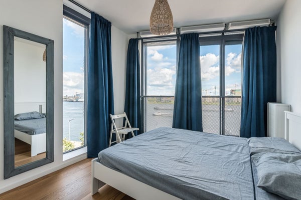 Spectaculair Uitzicht! Een panoramisch uitzicht over het IJ met de ochtendzon in de woonkamer. Het driekamerappartement is in perfecte staat en biedt veel wooncomfort + ondergronds parkeer garage inbegrepen in de prijs. Het complex is gebouwd in 2008 en voldoet aan de moderne eisen op het gebied van isolatienormen. Dus zeer goede geluids- en warmte-isolatie.