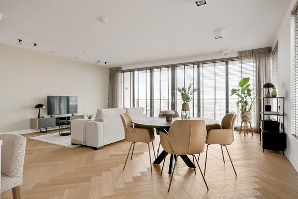 In deze metropolitaanse omgeving bieden wij dit schitterende, onder architectuur verbouwde appartement te huur aan, gelegen op de 15e verdieping van het Xavier-gebouw. Het appartement beschikt over drie slaapkamers, twee badkamers, drie wc’s en twee balkons met een spectaculair uitzicht. Daarnaast beschikt het over een lift, een aparte berging en twee parkeerplaatsen. Xavier is een complex met karakter en stijl. Dit kosmopolitische appartement wordt gemeubileerd aangeboden en heeft een woonoppervlakte van maar liefst 170 m², met een ruim terras van 18 m².