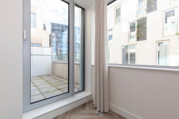 This unique spacious apartment is located in the recently completed green Vertical residential tower near Sloterdijk station. On the 5th floor of the complex there is a common roof garden, a gym, a spacious dinning area for all the residents and the option to book a guest room. The neighborhood is known for its diversity of residential towers, restaurants and other facilities. In addition, you are close to the Westerpark, the Sloterplas and with the nearby Sloterdijk station, the city and immediate surroundings are at your feet. As a mobility hub, the adjacent station offers quick access to the entire city and all surrounding areas.