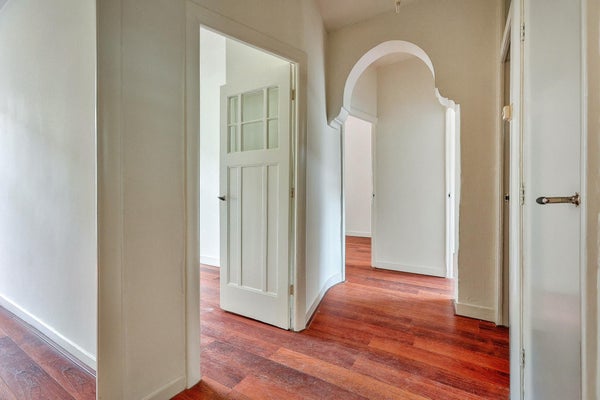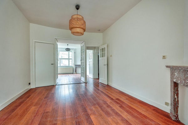 Entree in de woning met eiegn voordeur. Via de hal kom je in de andere vertrekken. De woonkamer heeft nog de originele openslkaande deuren tussen de voor en de achterkamer. Beide hebben ook nog de schouw. Beide slaapkamers liggen aan de tuinkant en geven ook toegang tot de tuin. De keuken wordt geleverd met inbouwapparatuur zoals een afzuigkap, koelkast, inductiekookplaat en een vaatwasser. De badkamer is voorzien van een wastafel, douche en toilet. De roale achtertuin ligt op het zuiden. De woning wordt geleverd met een mooie vloer en heeft door de ramen aan de voor en achterzijde, veel lichtinval.
