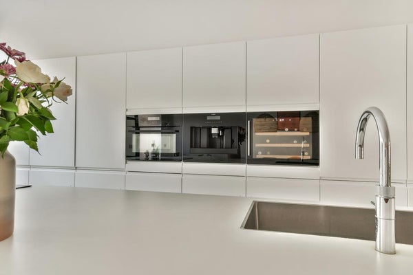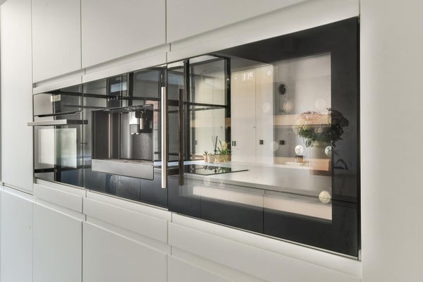 Privé-ingang, lichte open woonkamer met een geweldige plafondhoogte van meer dan 3 meter, zijhal met apart toilet en wasruimte met wasmachine en droger, open keuken met een prachtig kookeiland uitgerust met AEG combimagnetron, AEG koffiemachine, Quooker (gekookt water uit de kraan), vaatwasser, koelkast / vriezer en een klimaatkast voor wijn, 4-pits inductiekookplaat met geïntegreerde afzuigkap.