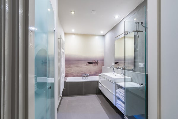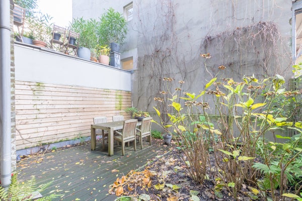 Entree op de begane grond waar je de hal binnenkomt, 1 grote slaapkamer aan de voorkant en 1 grote slaapkamer aan de achterkant. De slaapkamer aan de achterkant biedt toegang tot de gezellige tuin. Luxe badkamer met ligbad, aparte douche en dubbele wastafel, aparte wc. Er is een extra kamer aanwezig die je kunt gebruiken als kantoor.