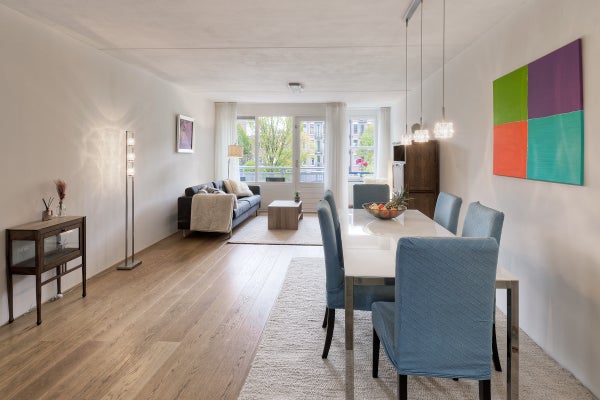Omgeving: De Staringstraat is zeer gunstig gelegen. Op loopafstand treft u de diverse winkelgelegenheden van de Jan Pieter Heijestraat en de Kinkerstraat (tevens markt). Er zijn allerhande gezellige cafeetjes/restaurants in de buurt. Het Vondelpark is op 3 minuten loopafstand en het Leidseplein op 4 minuten fietsafstand. Er zijn diverse tramlijnen in de directe omgeving en er is een goede ontsluiting naar Ringweg A-10. Deelauto’s beschikbaar recht voor de voordeur.