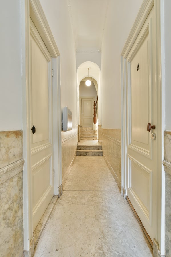 Via een statige monumentale hoofdentree (gemeenschappelijke hal) is het pand te betreden. Deze entree met indrukwekkende details biedt toegang tot het appartement alsook tot de bovengelegen appartementen.