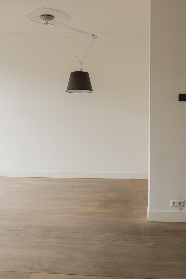 De L-vormige woonkamer heeft een mooie houten vloer, veel kasten. Er is ook een gasten toilet.
