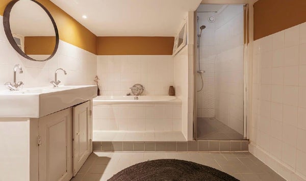 Het lagere niveau biedt een ruime master slaapkamer met directe toegang tot de tuin en een royale inloopkast, een tweede slaapkamer, en een apart thuiskantoor. De badkamer is voorzien van een badkuip, inloopdouche, dubbele wastafel en tweede toilet. Voldoende ingebouwde opslag is beschikbaar door het hele appartement.