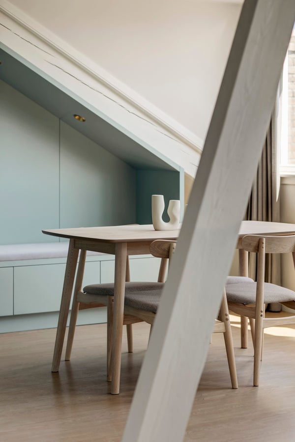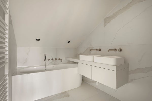 Dit luxe appartement op de bovenste verdieping, gelegen op de 4de verdieping, is zowel bereikbaar met de lift als via de algemene, volledig gerenoveerde trap. Via de hal betreedt u de gezellige woonkamer (inclusief Airco) met een absoluut stunning keuken en vindt u hier ook beide ingangen naar de slaapkamers. De slaapkamers zijn beide van goede grootte en hebben op maat gemaakte kasten en elk heeft een tweepersoonsbed. Down the hallway is er een badkamer met ligbad, douche en dubbele wastafels. Het toilet is apart.