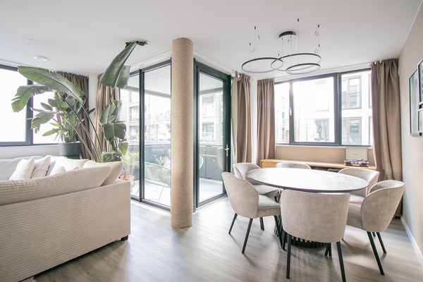 Alle huurappartementen in deze nieuwe buurt – in gebouwen van vooraanstaande Nederlandse architectenbureaus – zijn tot in de puntjes afgewerkt, voorzien van slimme installaties voor extra comfort en minder energieverbruik, en hebben een EPC van 0,4. Ook is elk appartement uitgerust met een riante buitenruimte en toegang tot de weelderige binnentuin.