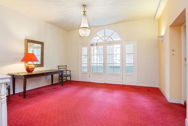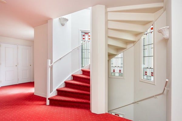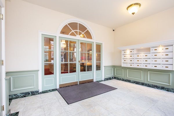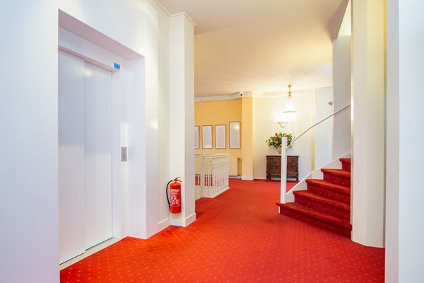 Binnenkomst in het statige en zeer goed onderhouden gemeenschappelijk trappenhuis vanwaar je of met de lift of met de trap de etage bereikt.