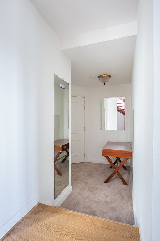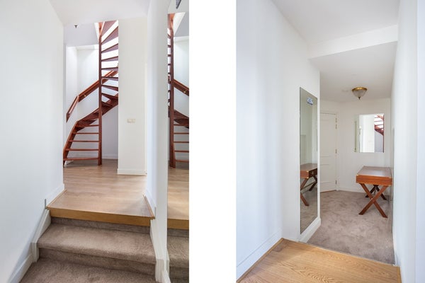 Middels de interne trap bereik je de tweede en bovenste verdieping waar zich de tweede slaapkamer bevindt.
