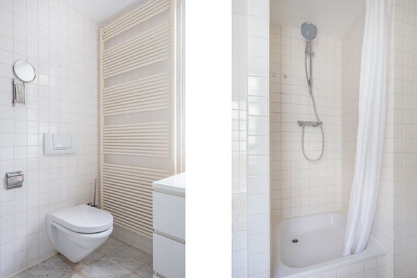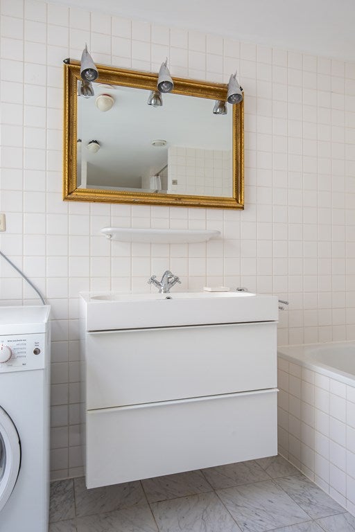 Op deze verdieping bevindt zich de eerste slaapkamer met Frans balkon en openslaande deuren en de badkamer met vloerverwarming welke is voorzien van een ligbad, douche, toilet en een wastafel en een wasmachine.