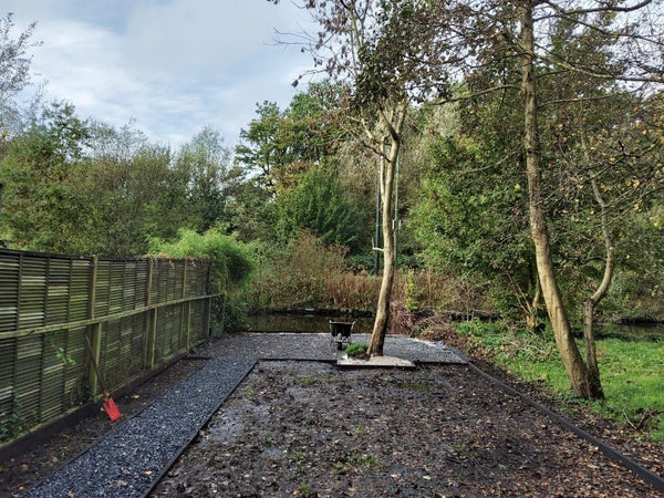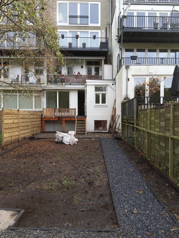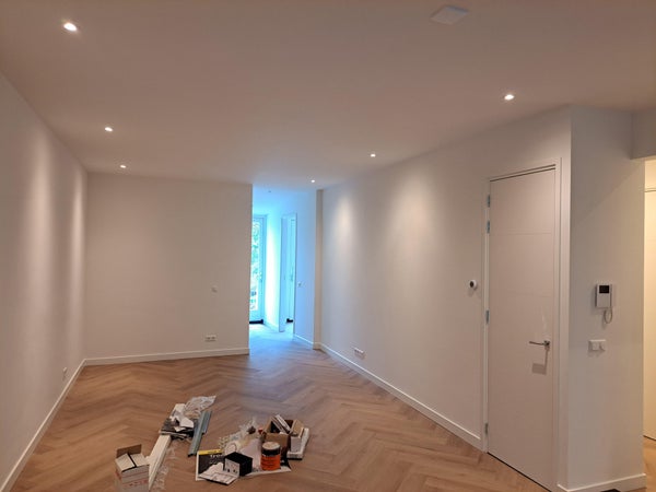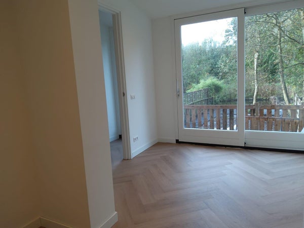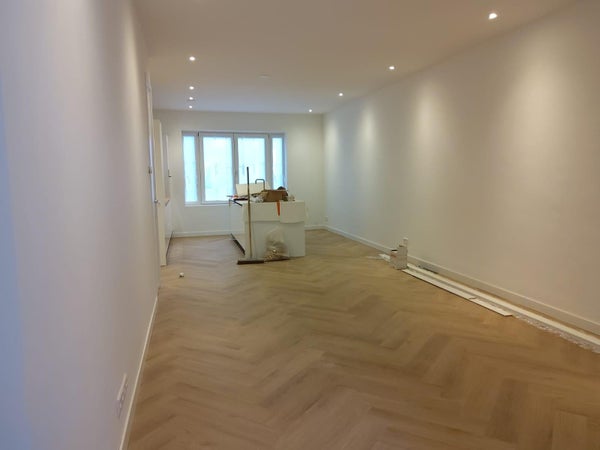 De tuin is nog in ontwerp en de visgraat PVC vloer wordt binnenkort geplaatst.